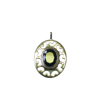 A clean, understated silver pendant set with a pear-shaped aventurine quartz cabochon. Dimensions: Approx. 3.9 cm length and 2 cm...