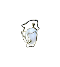 A sculptural silver ring shaped with flowing, organic lines around a smooth pale chalcedony stone.