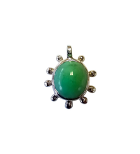 A smooth chrysoprase cabochon set in polished silver, accented with delicate rounded details that create a radiant, sun-inspired silhouette.