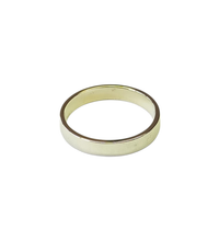 A handcrafted silver band with clean, flat edges and a simple, minimal profile.